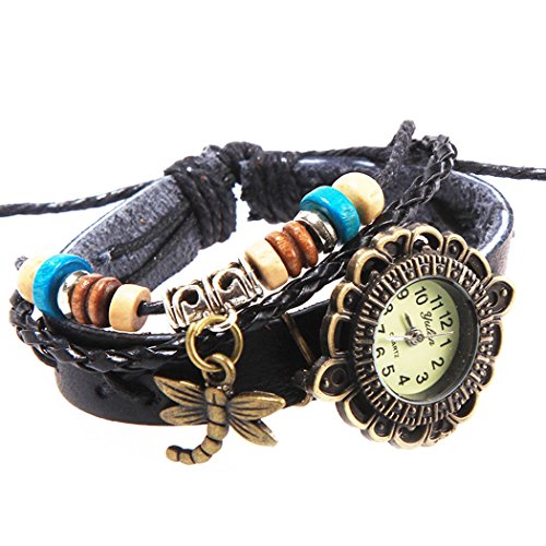 Montre bracelet vintage couture croisees avec pendentifs libellule et perles en cuir de daim noir est parmi les types de montre qui pourrait être ainsi un choix pour votre enfant