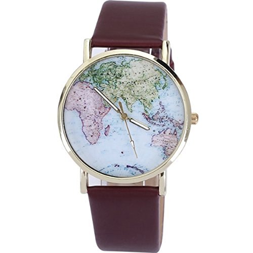 New plaqué or rose PU cuir de mode montres carte du monde de la couleur de la lumière de montre dame de quartz conception pour les filles est l’un des les trie de montre qui pourrait être ainsi un alternative pour votre jeune