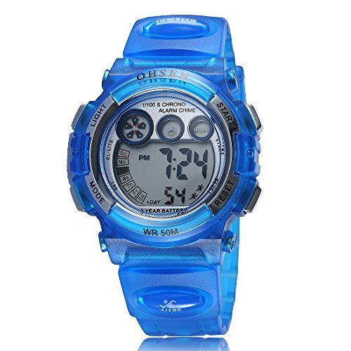 OHSEN Montre Quartz pour Enfant Garcon Unisex Mixte - Digital Ecran LCD Avec cadran bleu - Bande de silicone bleu - Date JOUR Alarm est parmi les types de montre qui pourrait être ainsi un alternative pour votre jeune