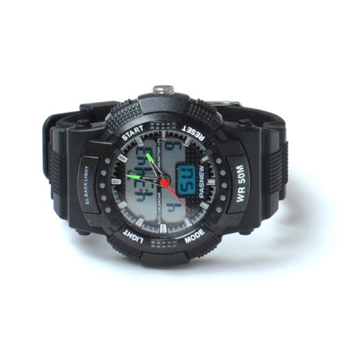 PaSNEW ANA-DIGI - 50 m Resistant- eau Anti-chocs et Anti-magnétique rétro-éclairage EL-Double temps de plongée natation adulte Student#361 Montre de Sport (Noir) est parmi les trie de montre qui pourrait être ainsi un option pour votre kid