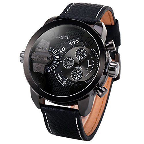 OULM - Montre Garçon Fille - Quartz Analogique - Bracelet en Cuir - Sport Fashion - Deux Cadran Etanche - Noir est parmi les sortes de montre qui pourrait être ainsi un choix pour votre jeune