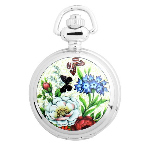 UQ Montre de poche-Homme/ Femme/ Enfant-B5 S3033-Chaîne-Argent-Fleurs Papillons est parmi les trie de montre qui pourrait être ainsi un alternative pour votre enfant