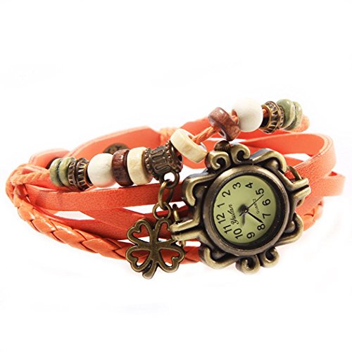 Montre bracelet cadran bronze retro pendentifs trefle et perles en cuir de daim orange est l’un des les types de montre qui pourrait être ainsi un option pour votre jeune