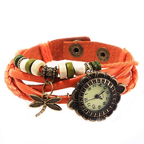 Montre bracelet ethnique cadran retro pendentifs libellule et perles en cuir de daim orange est parmi les types de montre qui pourrait être ainsi un option pour votre jeune