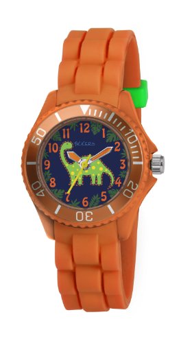 Montre Tikkers Garçon Rouge Orange en Silicone et Motif Dinosaure sur Cadran: Amazon.fr: Montres