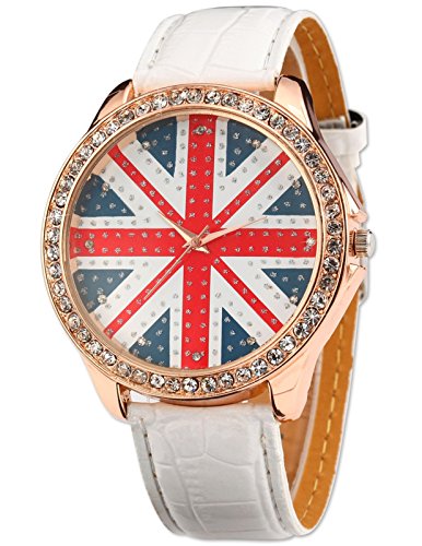 AMPM24 Montre Classique Bracelet Cuir PU Cadran Rond Drapeau Style Anglais Unisexe Blanc WAA211 est l’un des les sortes de montre qui pourrait être ainsi un choix pour votre jeune