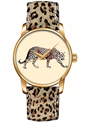 Montre Femme|Fille - OUO Montre Analogique à Quartz - Boitier en Acier Inoxydable Doré et Bracelet en Vrai Cuir Motif Léopard - Cadran Dessin de Léopard est l’un des les types de montre qui pourrait être ainsi un alternative pour votre jeune