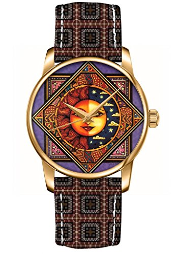 Die Montre Femme|Fille - OUO Montre Analogique à Quartz - Boitier en Acier Inoxydable Doré et Bracelet en Vrai Cuir Motif Cubique - Cadran Solaire Lunaire Details