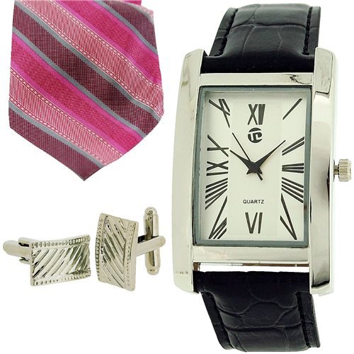 Die Montre Time Design Homme avec Chiffres Romains, Cravate & Boutons de Manchette Details
